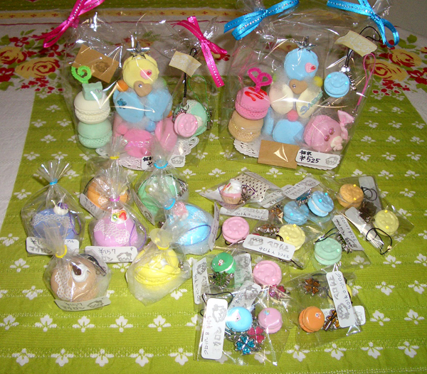「マカロンタワー ¥525」 「マカロンのストラップ ¥157」 「スマイルストラップ ¥126」 「クローバーストラップ ¥105」等 楽しくて安くて可愛いものいっぱい。