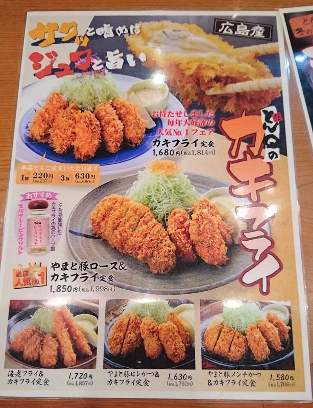 「やまと豚ヒレかつ&カキフライ定食 1760円」
