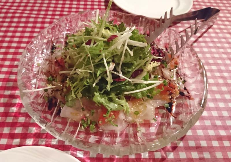 「宇和島産直送鮮魚のカルパッチョ サラダを添えて ¥1800」