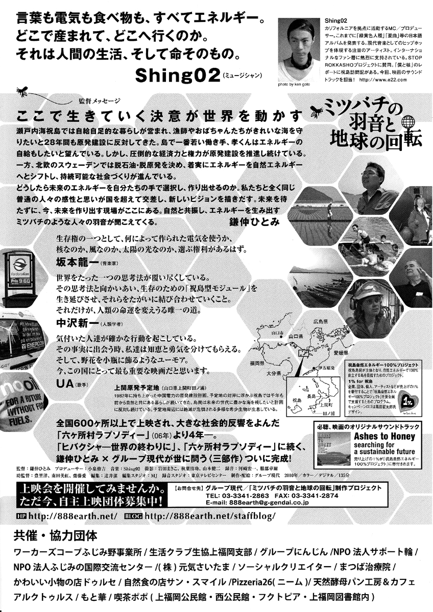 鎌仲ひとみ監督作品 祝島とスウェーデンでエネルギーの自立に取り組む人々の物語です。