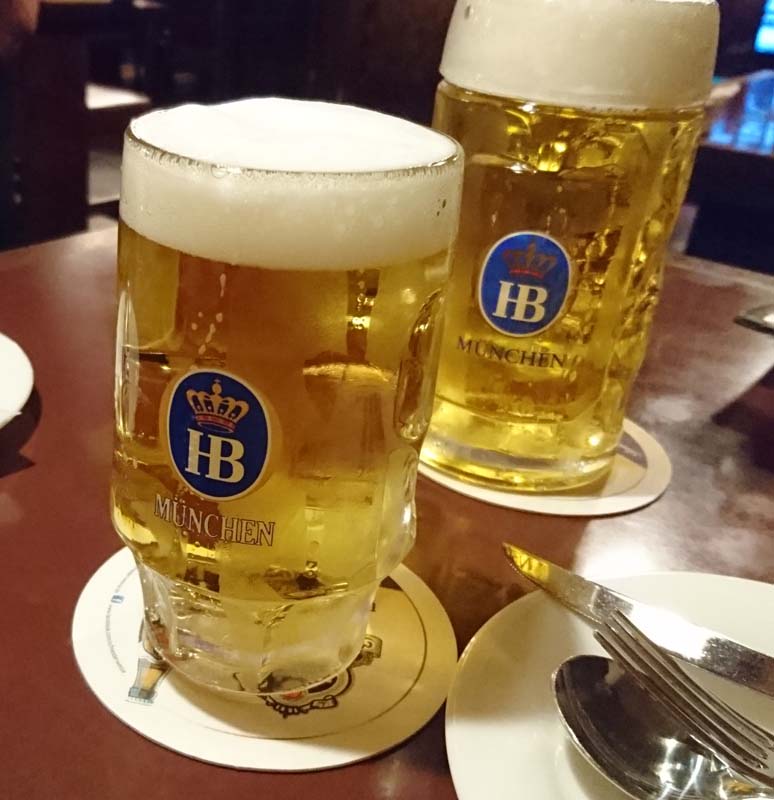 「HBミュンヘナー ヴァイスビア (樽生) 小ジョッキ(300ml) ¥600」