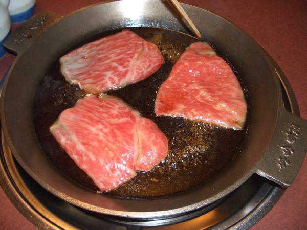 最近、固い物が苦手な私でも、とろけるように簡単に噛み切れる、柔らかな霜降りの黒毛和牛は、さすがに老舗です。 うまうま、温かい夜でした。 スキヤキって、一年に一度位、妙に食べたくなります。