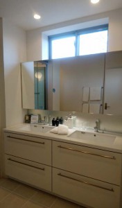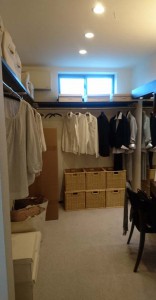 WICの中に、大きな鏡と洗面台が付いて、メイクルームに。