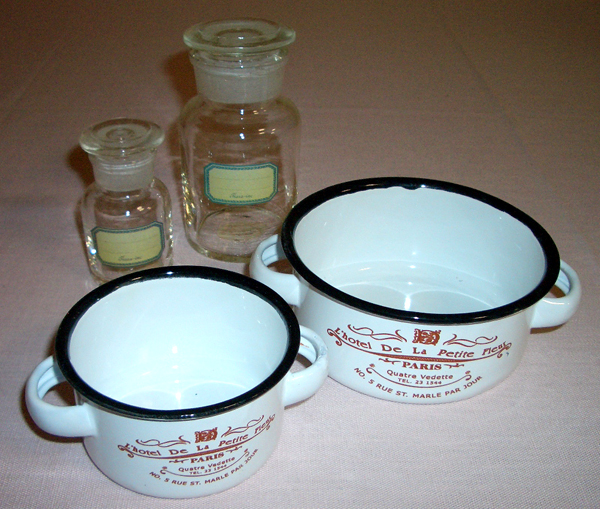 「アンティーク調 琺瑯のカップ 小¥409(390) 大¥514(490)」 COVENT GARDEN 小さくて平べったいので、小物入れや植木鉢などにも使えそうです。 「アンティーク風 薬型の広口瓶 小¥280(267) 大¥320(305)」 Tiara 仕上がりは、アンティーク調に荒くなっているので、ディスプレイ用です。