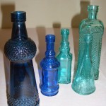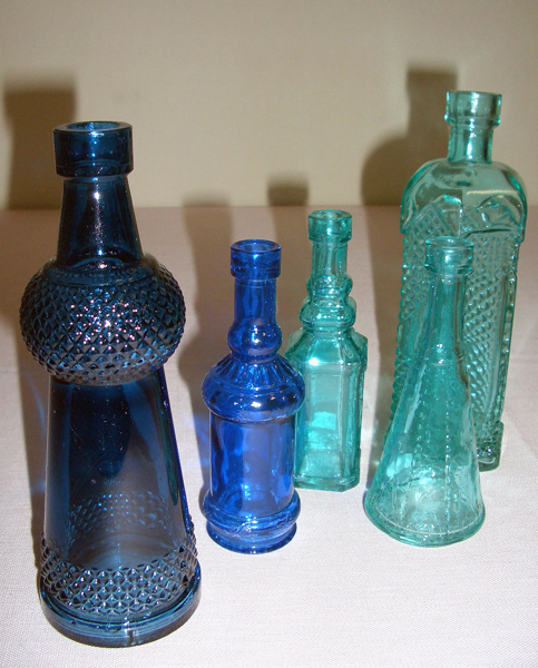 「アンティーク調 ブルーのガラス瓶 小¥252(240) 大¥368(350)」 COVENT GARDEN 新製品 「アンティーク調 グリーンのガラス瓶 小¥252(240) 大¥368(350)」 並んでいるだけで、かわいいです。