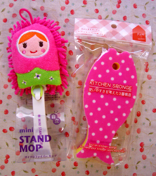 ピンクのマトリューシュカが可愛い 「マイクロファイバーモップ」 ¥525(500)が、ミニタイプで立って置ける形になって、新登場。 使いやすくておなじみの 「魚型 キッチンスポンジ」 ¥399(380) は、3層構造で、流行ちうの水玉模様が、新発売。 新入学、新生活のプレゼントに、大人気です。