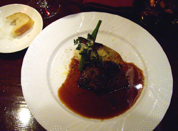 メインは肉料理をオーダー。 「牛フィレ肉のソテー赤ワインソース」 マッシュポテトとオクラと茄子が、付いていました。