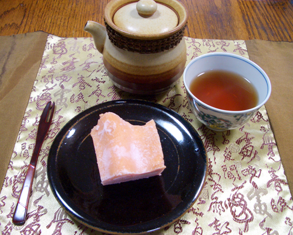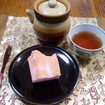 台湾華泰渋谷店で買ったプーアール茶を、台湾鶯歌の陶作坊(こちらは普通の水も美味しくなる、という煮水器が有名)の、大きめのポットで淹れて、姉の北京土産の茶杯でいただきます。 お皿は、陶芸家の妹が焼いたものです。