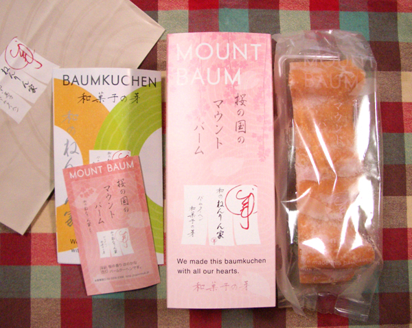 西武のデパチカで買った、「ねんりん屋」の、「桜の国のマウントバーム」。 ほのかな桜の香りで、可愛いピンクのバームクーヘンです。