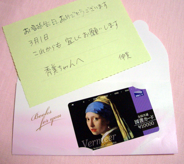 家族のみんなからも、メールや電話をもらい、娘から「お香と懐紙」を(可愛い)、姉から「図書カード」が郵送で送られ(ヤッター)、本当に良い一日でした。