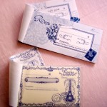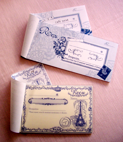 「お花とレースの領収書」 「ヨーロピアンな領収書」 どちらも2枚複写 ¥399(380) エッフェル柄の紙は黄色です。