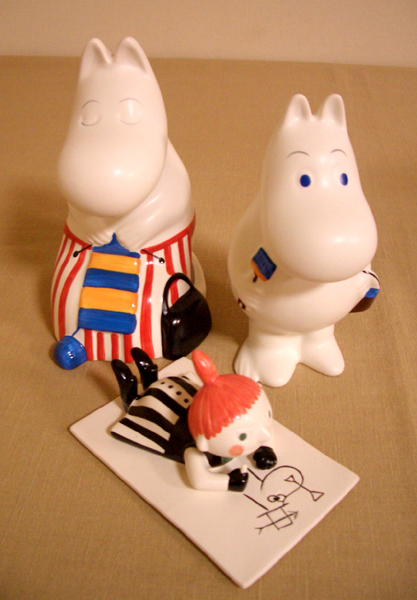 写真を撮る前に売れてしまった、アラビア社フィギアのムーミンパパとフローレン。 ミィちゃんも再入荷して、ムーミン一家が揃いました。