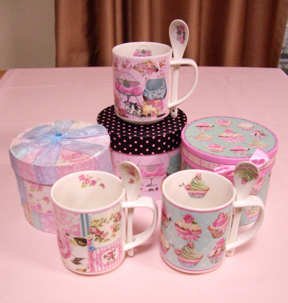 「マグカップ ¥1050(1000)」 おしゃれな丸いギフトボックスが大好評で、ギフトに人気です。 スプーンが付いたのが、新製品です。