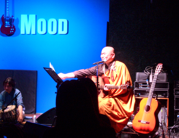 インドで仏教活動をされている、中村行明上人とは、30年来のご縁で、いろいろとおせわになっています。 昨年、ゴダイゴのミッキー吉野さんのアレンジで、CD 「ANOTHER SIDE OF BUDDHISM」を、出されました。 今回の帰国で、ライブをされるとメールが届き、汐留の「BLUE MOOD」という、ライブハウスまで、出掛けて行きました。