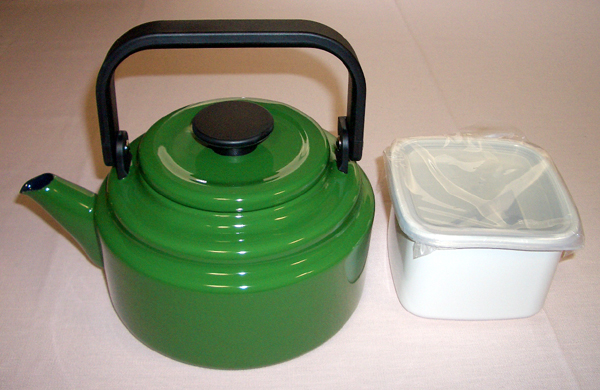 日本の職人仕事 「野田琺瑯」 さんも、少しづつ増えています。 「アムケトル ¥5250(5000)」 安定感があり、懐かしい佇まいと、機能美を追求した、使う人にやさしいハンドル、深みのある色も魅力です。 樹脂ハンドル・つまみは、柴田文江のデザイン。