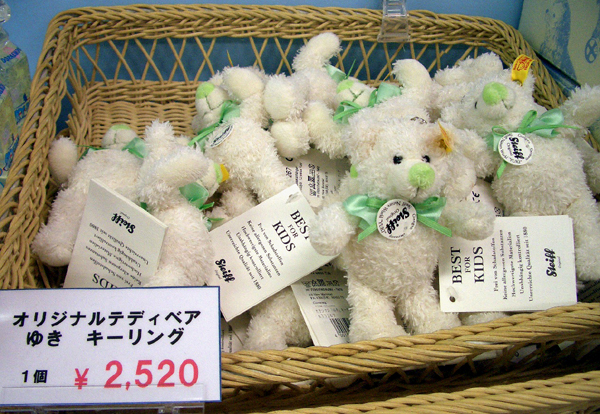 昨日月曜日、仕入れの帰りに、池袋西武「春の北海道うまいもの会」に、寄りました。 催事場は、人でいっぱい。 入口近くの籠の中に、「シュタイフ オリジナルテディベア キーリング ゆき ¥2520」が・・・。 可愛いけど、食べ物優先で、あきらめます。