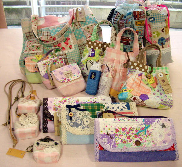 久しぶりの作品。 Cocoaちゃん、春らしい明るくて可愛い小物が出来ました。 「グラニーバック ¥1438」 「ミニケース ¥536」 「リップケース ¥450」 「長財布 ¥2730」 「ペットボトルホルダー ¥1155」 「ミニトート ネックレス ¥997」 等、たくさん縫ってくれました。 頑張ったね。