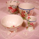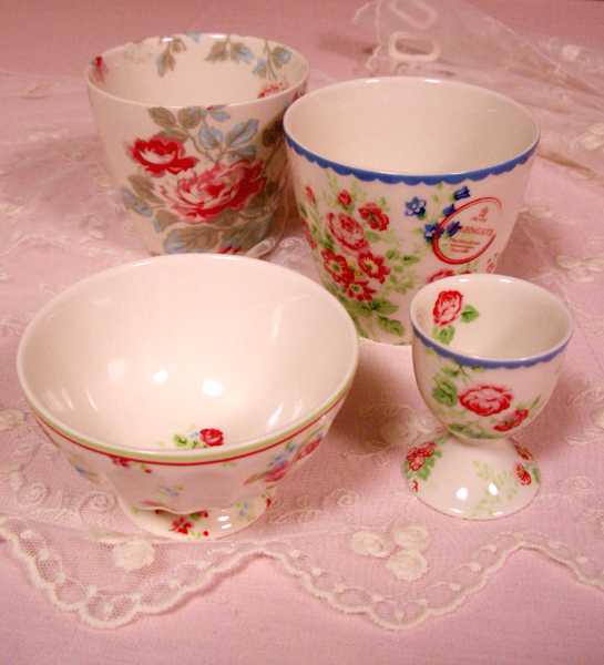 デンマーク生まれの、薔薇柄が華やかで色合いが可愛い Green Gate (グリーンゲート) のテーブルウエアが、好評です。 「エッグカップ ¥735」 「フレンチボウル ¥1365」 「ラテカップ ¥1470」 等、いろいろアイテムが入荷しています。 白いミニ薔薇のレースは 「カフェカーテン ¥1890」