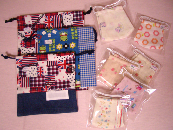 「子ども用立体マスク ¥368」、作りました。 普通サイズ立体マスク(¥399)も、あります。 コップ袋等、毎日作っています。
