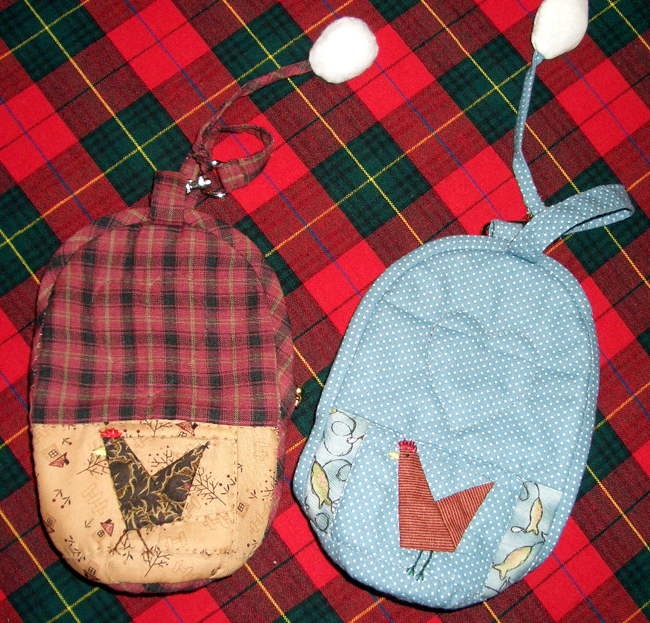 先生と三瓶さんのペットボトルホルダー。 みんな違って、パッチワークは楽しいです。