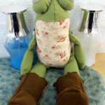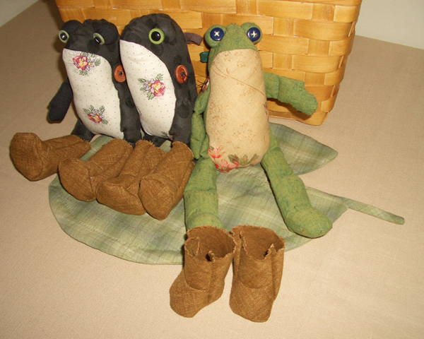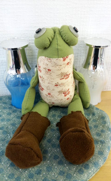 皆勤賞の2人のカエルが、出来ました。 3匹いるのは、先生のカエルです。 お家でくつろいでいるのは、三瓶さんのカエルです。 大原さんは、足が可愛らしすぎてブーツが作れませんでした。