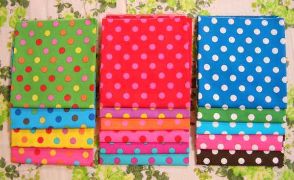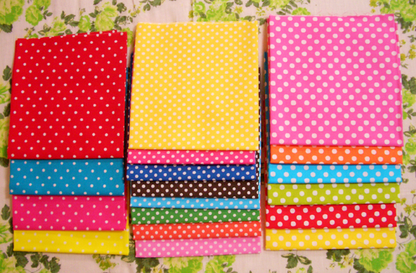 夏に涼しい、年中楽しい、水玉のカットクロス(¥210)入荷。 5月12日(土)バザーの日も、新しい生地・手芸品の販売が、あります。