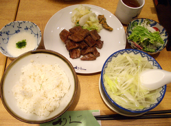 6階の 「牛たん炭焼 利久」で、 「牛たんヘルシー定食 ¥1575」 牛たんちょっと少なめ、とろろ、ミニサラダ、テールスープ を、いただきました。 うまうま。