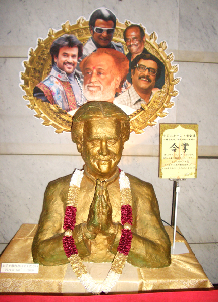 6時半から、東京映画祭で面白かったと友人推薦の、インド映画 「ロボット」 鑑賞。 わけがわからないけど、おもしろかった。 フロアーにあった、ラジニカーント(主役のインド人)の胸像。 なんと60歳過ぎているのに、若者役でロマンスもあったり、インド映画お約束で、踊りまくります。 カッコいい!! おもわず、合掌!