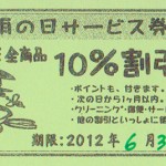 雨の日のお買物時に、「雨の日サービス券」を、お渡ししています。 期間は、次の日から1ヶ月。 全品10%割引になります。 雨の日にお渡ししていますが、雨が降っていない日も使えます。