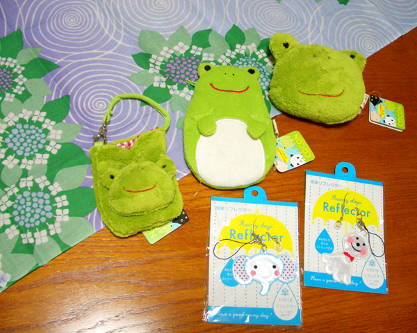 COCONのカエルは、「モバイルポーチ ¥735」 「ポーチ ¥630」 「のびのびパスケース ¥735」 傘用反射材マスコットの、ぞうさんとてるてるぼーず 「雨傘リフレクター ¥399」 は、傘の先端に、取り付けて使え、ビニール傘の目印にもなります。
