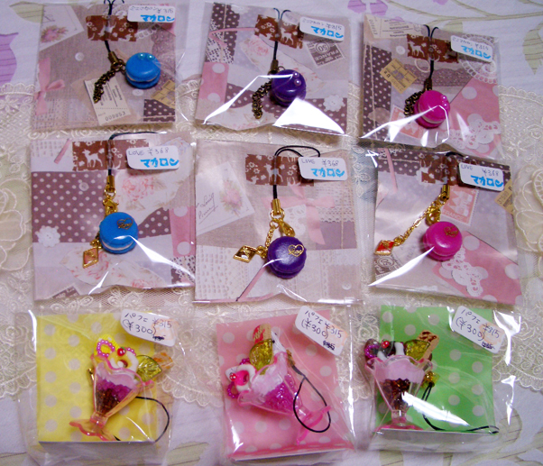 マカロンさんも、大人っぽい色でチャームの付いた新作 「ミニマカロン ¥315」 「LOVEマカロン ¥315」 を、納品。 頑張ります。