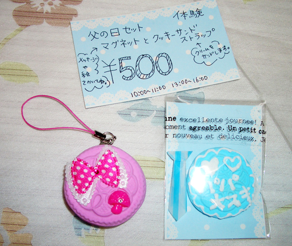 マカロン(吉野)さんの、「デコ体験教室」で、6月17日(日)父の日プレゼントの為に、 「マグネットとクッキーサンドストラップ ¥500」 の、体験教室を用意してくれました。 マグネットにはメッセージや絵を描けます。 マカロンさんの教室は 10:00~11:00 と 13:00~16:00 です。