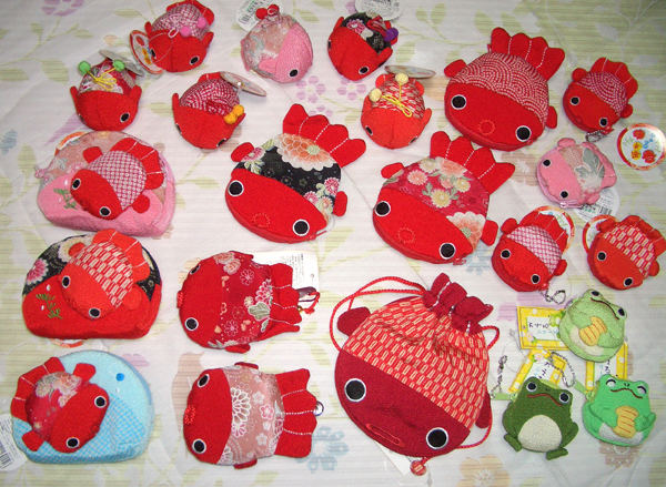 縮緬小物の 金魚 が、いっぱい入荷。 「巾着 ¥420」 「手鏡 ¥420」 「小銭ポーチ ¥294」 「ポーチ ¥315」 「化粧ポーチ ¥399」 「お手玉 ¥263」 夏のちょっとしたプレゼントに、可愛いですね。 お手玉は、絶対欲しい!