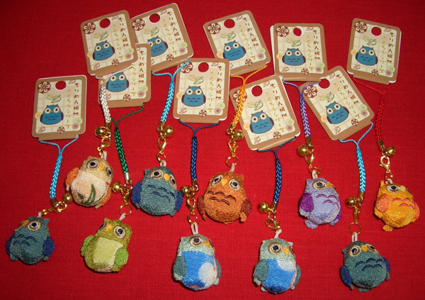 「ちりめん根付け ふくろうシリーズ ¥210」 縁起の良いふくろうの、新製品。