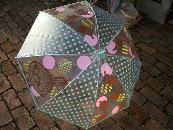 ミィちゃんの透明の傘です。 柄が少し曲がっていました。 心当たりのある方は、取りに来てね。 実はもう2年前から置いてある、忘れ物の傘も・・・。 困っている人に貸出しています。