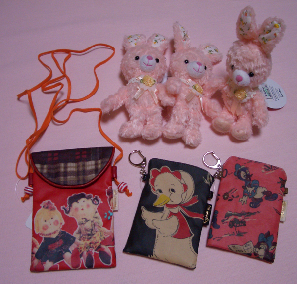 なんか可愛いポーチ。 「ポーチ ¥840」 「紐付きポーチ ¥1890」 人気のぬいぐるみ、ボールチェーン付き 「キャンディラビット ¥504」