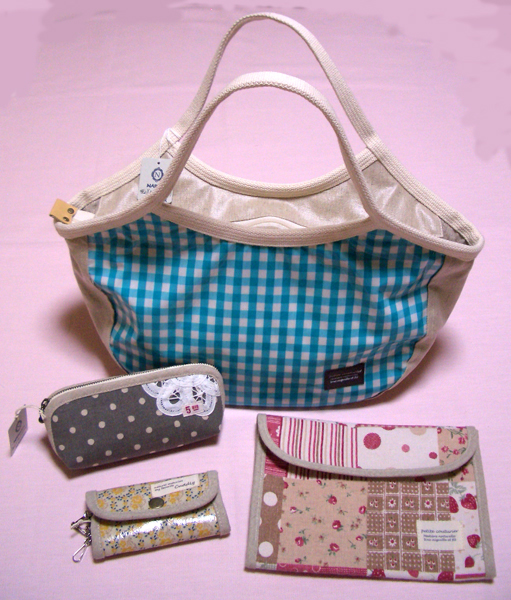 NARURUさん、本日納品してくれました。 が、写真を撮る前にどんどん売れます。 急いで、追加をお願いしました。 大人気のバックにチャックが付いた、 「ラミネートバック ¥3465」 バテンレースがキュウト 「めがねポーチ ¥945」 「キーケース ¥892」 「マルチケース ¥1470」等。