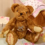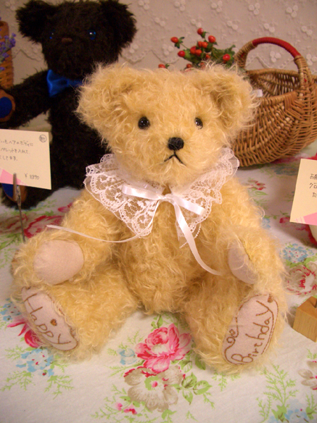 「モヘアのバースディ・ベア」 30cm 手触りのよいモヘアのボディ お腹にペレットが入っています。 ¥8890 残念ですが売約済みになりました。