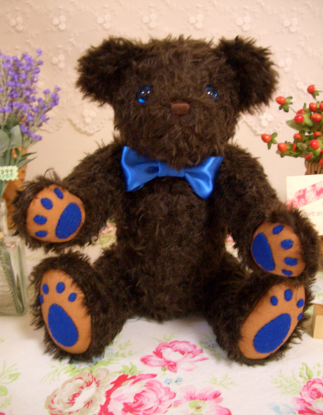 「肉球がブルーなベア」 36cm 目と手のひらと足の肉球がブルーな個性的なベア ¥12800