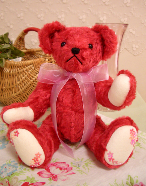 「桃色のベア」 足の裏にお花のビースがついています。 ¥6500 残念ですが売約済みになりました。