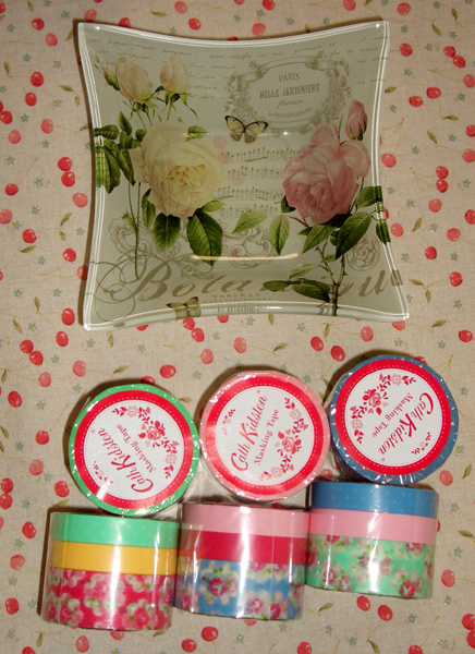 「かわいい布張りの、ちいさな籠 ¥735、¥840」 「バラのガラストレイ ¥997」 「Cath Kidston マスキングテープ ¥840」 「かえる ¥714」 「まるい籠 ¥525」 「ちいさなクマの入っている蛍光ペン ¥105」 等、ぞくぞく入荷しています。