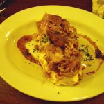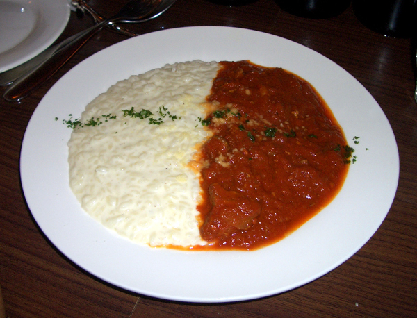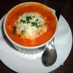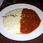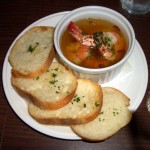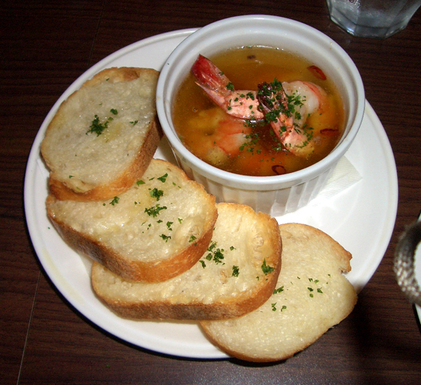「エビのガーリックオイル煮 ガラムマサラ風 バゲット添え」 この間、500円の「スパークリングワイン」を頂き、グラス500円の「白ワイン」を、こちらの好みで(さっぱりめ、とかフルーティとか・・・)どんどん選んで、出して下さるのですが、そのタイミングが絶妙。 ついついワインが進みます。 で、最後は「リゾットカレー 800円」で、閉めます。