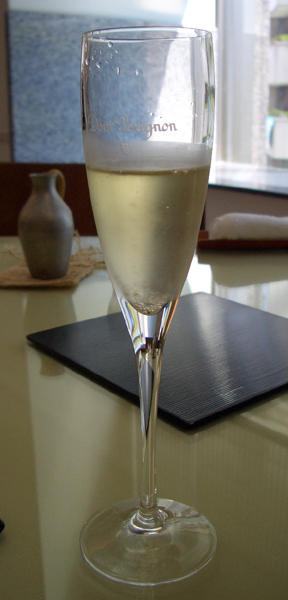 渋谷に行ったので、お昼は優雅にセルリアンタワー2Fの 「金田中 草」 で、和食をいただきました。 平日のお昼ながら、お客様がどんどんいらっしゃいます。 薦めて頂いたので、シャンパンも・・・(^^ゞ 。 サーブの方が、清々しいお兄さんです。