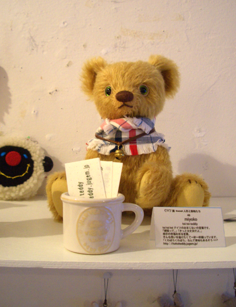 神保町の小さな路地の横を入って、建物の2Fの6畳位のスペースでの展示会。 テディ・ベア教室にいらしていた岡田さんの作品。 スカーフを巻いたオリジナルくまさん、可愛いです。