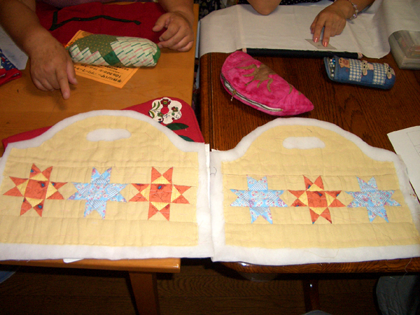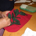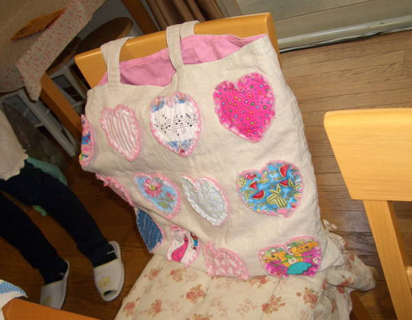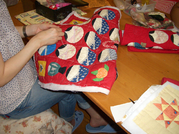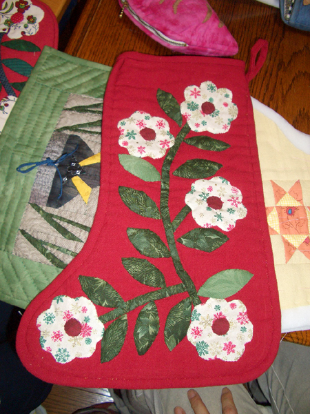 三瓶さんの、クリスマスブーツができました。 柳下さんは、作成中。 頑張れ。 塚ちゃんの、綺麗な色のパターン。 大作です。 キルト頑張れ。 新人さんも、間に合いそう。 頑張れ。 新人さん、先生の大きなバックを見て、チャレンジを決意。
