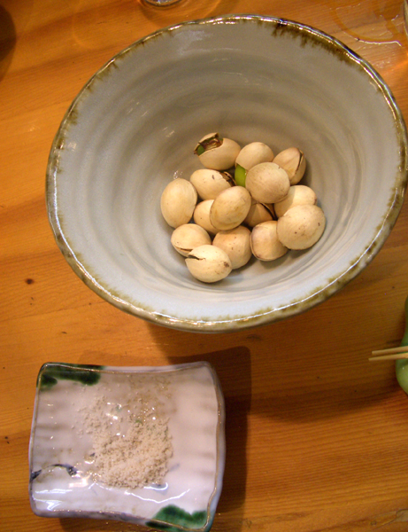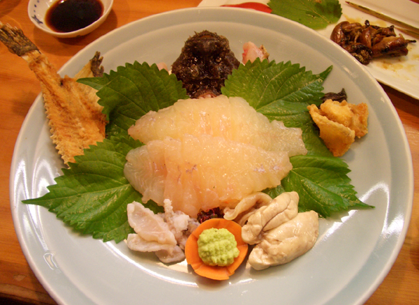 「かわはぎの薄造り」 肝が、めちゃめちゃ美味しかった。 「おこぜの刺身」 恐い!口がぱくぱくしています。 おおきな、「ぎんなん」