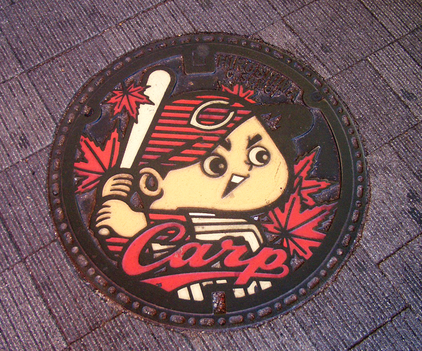 さすが広島。 マンホールの蓋に、カープ坊やが・・・。