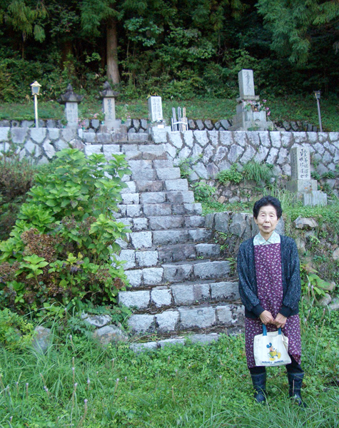 お母さんとお墓。 草が生えない様に、4kgの塩を撒いたおかげで、墓の周りは草がないらしいです。