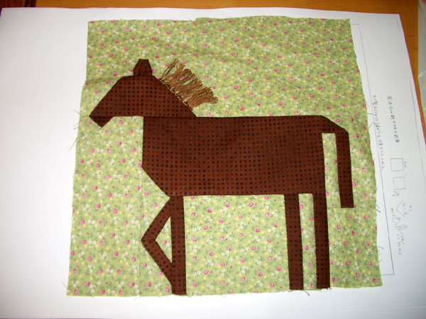 今日の「パッチワーク教室」は、「馬」を作ります。 ちいさなパターンが多い、複雑な作業なので、慎重に型紙を作ります。 耳が出来ました。 パーツを並べてみます。 ちいさいです。 (-。-;