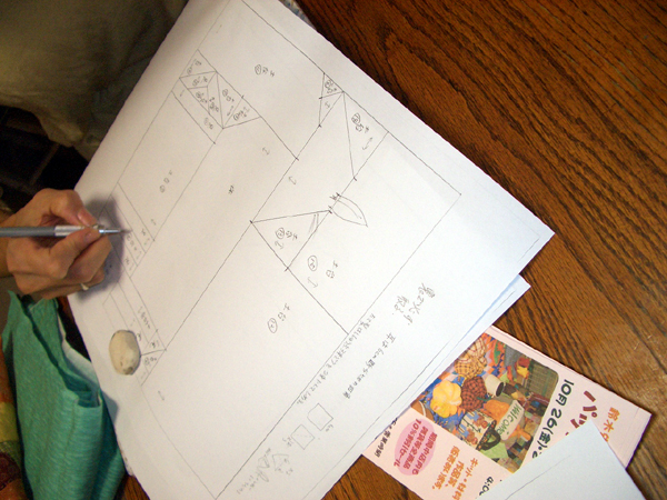 前回課題の、三瓶さんのバック。 色が鮮やかで、素敵です。 もうすぐできるかな。 裏に水森亜土ちゃんの可愛い絵柄を使います。
